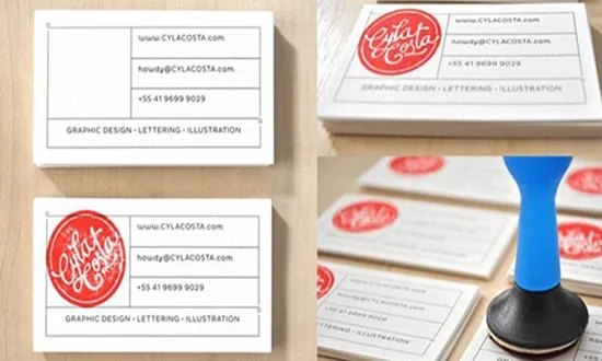 흔히 사람들은 명함을 인쇄해서 만듭니다. 그렇다면 맞춤형 스탬프를 사용해서 새로운 명함을 만들어보는 것은 어떨까요? 잉크의 질감 만으로도 시각적인 자극을 줄 수 있습니다. 또한, 스탬프 명함만의 투박한 매력을 느낄 수도 있죠.
