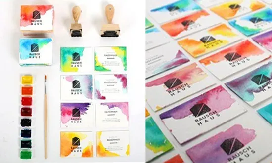 명함에 수채화 물감이 번지는 듯한 효과를 주면 세련된 느낌이 들게 할 수 있습니다. 물결 모양이나 떠있는 구름, 오로라 불빛 등을 표현하면, 차분하면서도 멋진 분위기를 만들어 줍니다. 명함에 색깔을 주고 싶지만 지나친 느낌을 원하지 않는다면, 이 방법이 좋은 선택일 수 있습니다. 직접 색칠하면 고객들을 만날 때마다 모두 다른 명함을 줄 수 있습니다.