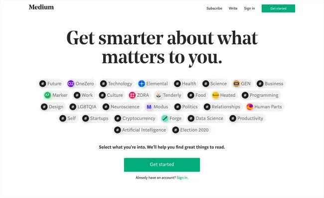 미디엄은 트위터 설립자들의 아이디어로 만들어졌습니다. 그래서 트위터에서 예전에 시도했던 “긴 글” 서비스처럼 보이기도 합니다. 어쨌든 미디엄은 기능적으로는 많은 제약이 있기는 하지만, 글쓰기에 중점을 둔 소셜 공간입니다. 사람들이 여러분의 말을 진지하게 받아들이기를 원하고, 세련되면서도 간결한 서비스를 원한다면, 미디엄이 그런 활동에 적절한 곳입니다. 맞춤형 서비스와 자유로운 기능을 원한다면, 다른 곳을 찾아보시는 게 좋을 것 같습니다.