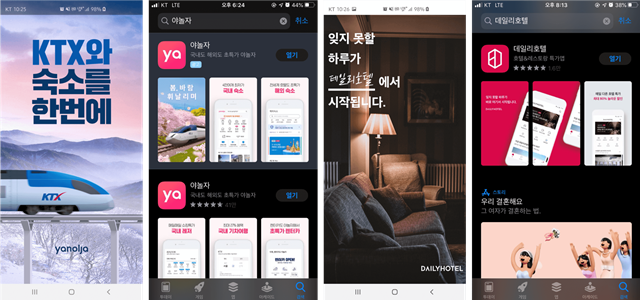 – 야놀자는 기존 숙소, 레저 외 기차표를 예매할 수 있다는 기능적 장점을 이미지와 문구로 반영