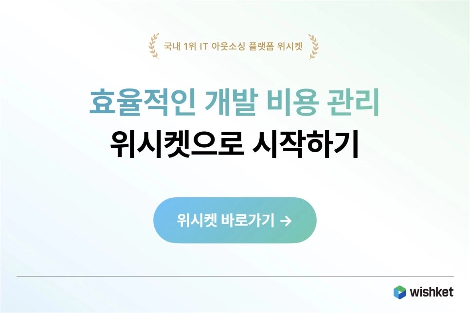 앱개발 비용을 효율적으로 관리하고 싶다면 아래 링크를 눌러 위시켓을 만나보세요. 국내 1위 IT 아웃소싱 플랫폼 위시켓이 여러분의 성공적인 앱개발 프로젝트에 조력자가 되겠습니다.
